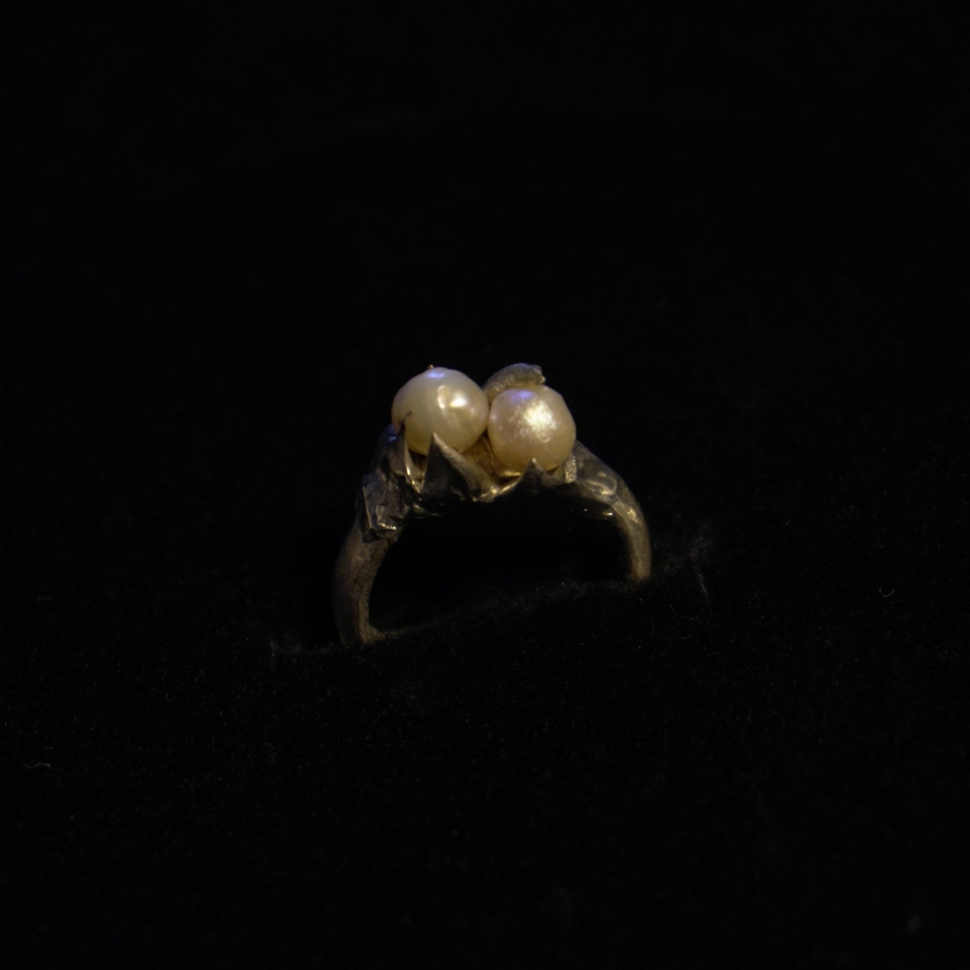 ✦ duo of sterling-threaded freshwater pearls, set with solder sculpture