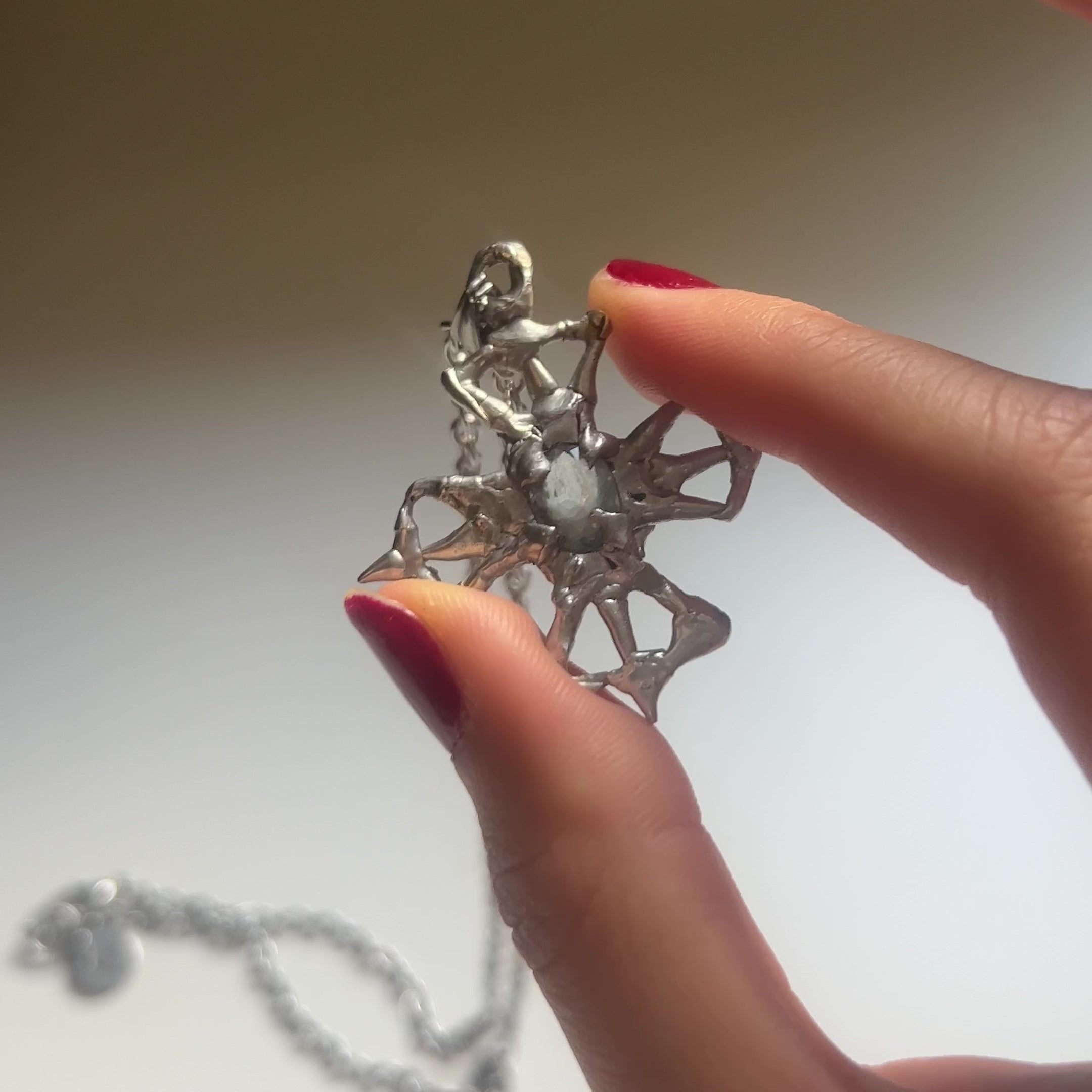 Handmade soft solder (tin/copper/silver) aquamarine pendant necklace.